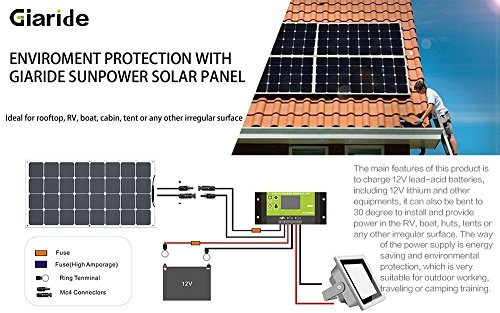 - ☀ Qué usted consigue, el Giaride Sunpower panel solar flexible de 100W, manual de instrucciones, garantía de 18 meses y servicio de atención al cliente amistoso.